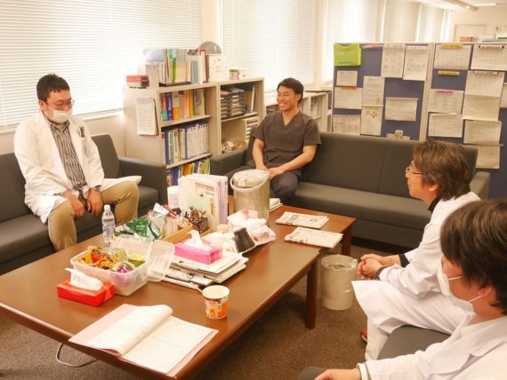 写真を撮らせてくださ~い! と医局に行ったところ、たまたま休憩していた神田院長と五十嵐先生に遭遇!