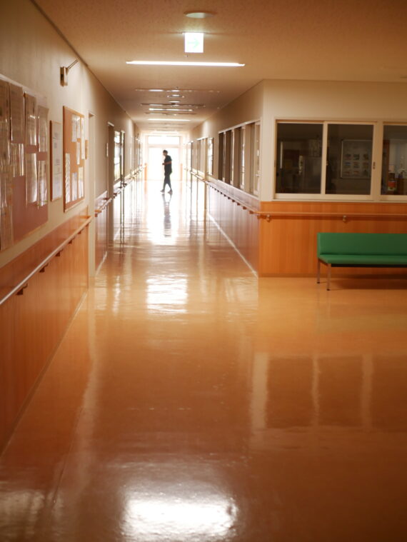 ホールや廊下も消灯。薄暗いデイケアは、昼間とは真逆の雰囲気を醸し出しています。