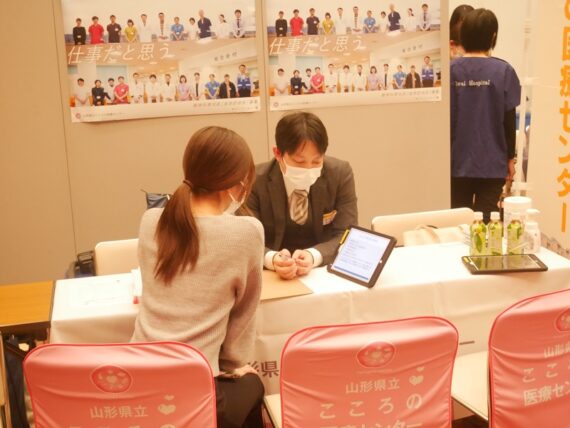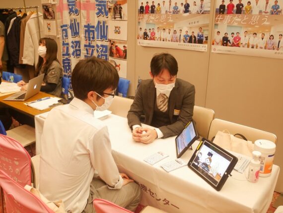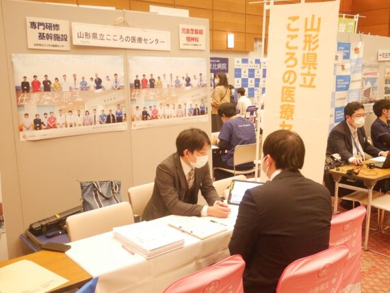 当院のブースには1名の学生さんと、他病院のスタッフとして来場していた初期研修医の方3名が訪問してくださいました
