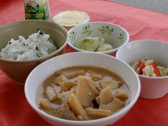 庄内産孟宗と豚肉、厚揚げ、しいたけを酒粕とみそで味付けしたボリュームたっぷりの孟宗汁に、大変喜んでいただけました。