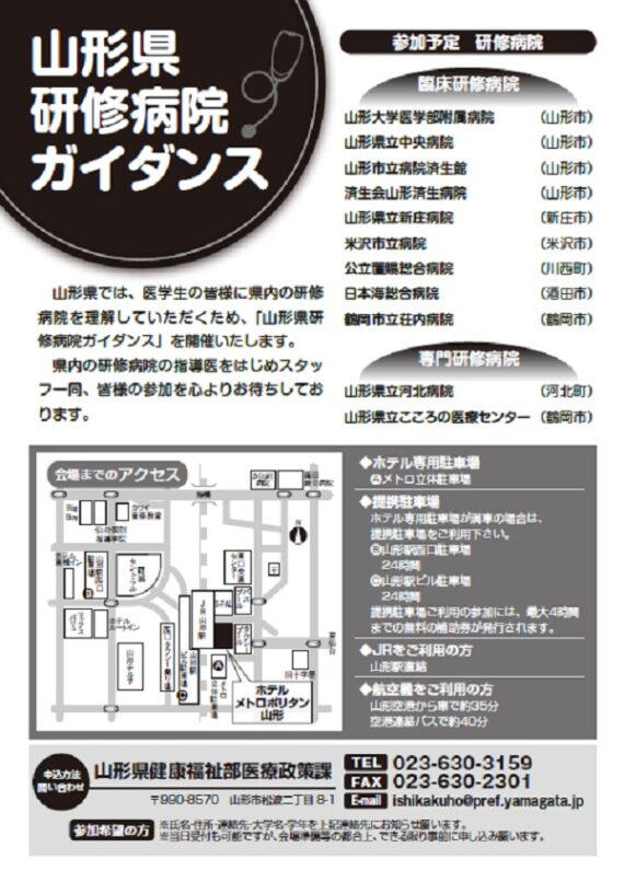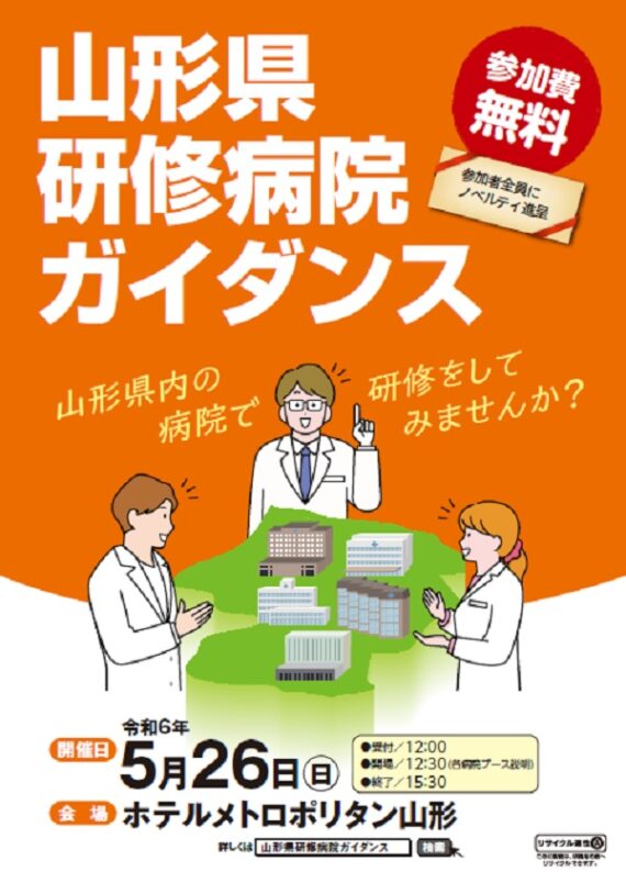5月26日(日)に開催される【山形県研修病院ガイダンス】に当院も参加します。