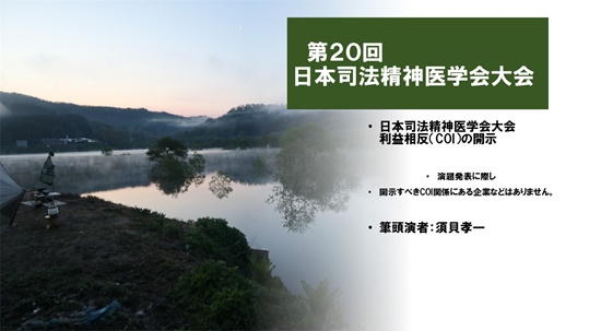 ちなみに少し前のブログで水没林が出てましたが、私は学会スライドに全部自分で撮影した写真を使ってスライドづくりには命を懸けます(笑)。この写真、撮影が実は朝の4時半。湖面の朝霧、山の雲海、そしてそろそろ日が昇ってくる絶妙な時間…。この時間に写真を撮るのはオートキャンプ場にキャンプでもしないと撮影まず無理ですが、私は家族でGW米沢に泊まって3時半おきで白川ダムに向かって絶妙な時間の写真を撮ることができました(笑)。今年の演題は裁判員裁判に乗ることになった精神障がいの事例について、裁判員裁判で市民感情も反映された判決が下ることは被害者と遺族の心情に寄り添うことにはなったと思う、でも被害者にとって本当に救いになるのは何?といった話をさせていただいたので重鎮から突っ込まれることもなく、水没林のスライドにはみんな食いついてました。