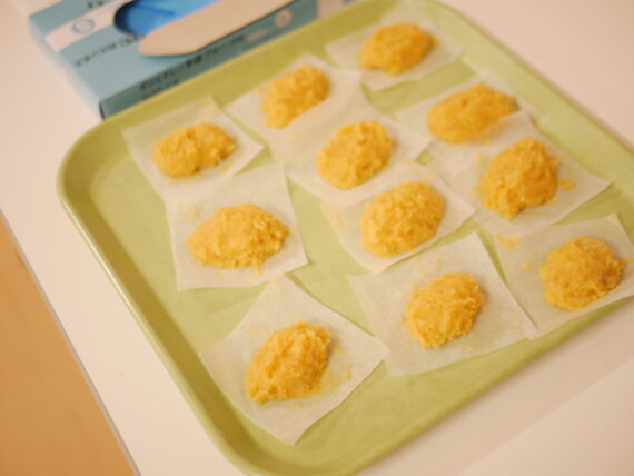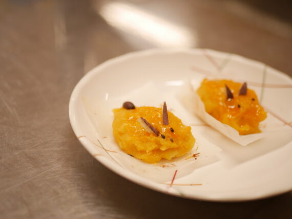 耳はサツマイモの皮、目と口は黒ゴマ、しっぽはコーヒー豆をあしらってみました。