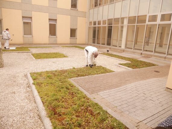 ここセンの中庭の雑草も元気よく伸びてきています