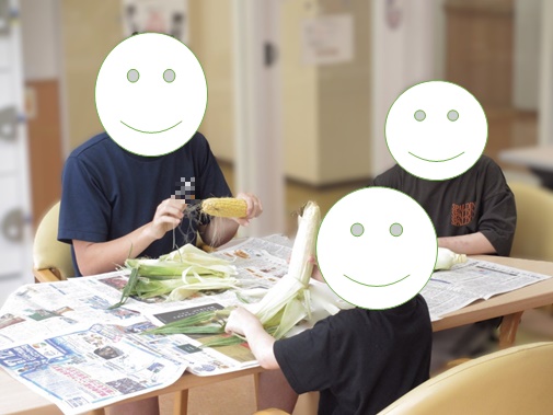 先日食育をかねてトウモロコシの皮むきを皆さんで行いました。