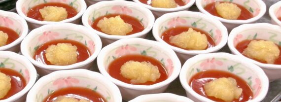 デザートには、まるでいちごゼリーのような見た目のトマトとりんごのゼリー。甘さと酸味のバランスが絶妙でした。