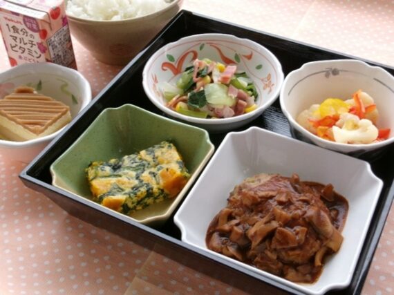 『きのこのデミグラスハンバーグ』はぶなしめじとマッシュルームの風味、デミグラスソースのコクが効いた一皿になりました。