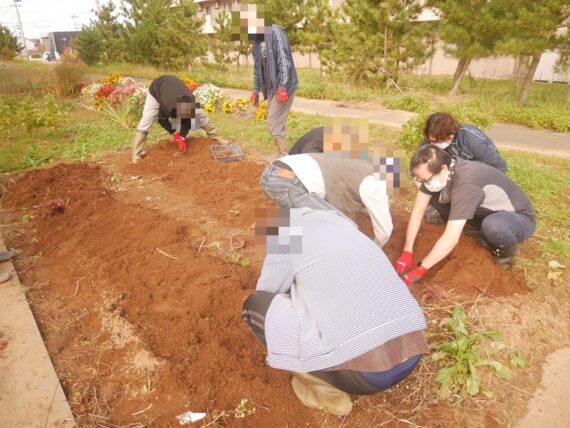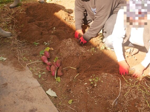 デイケアの利用者さんとスタッフが協力して収穫していきます