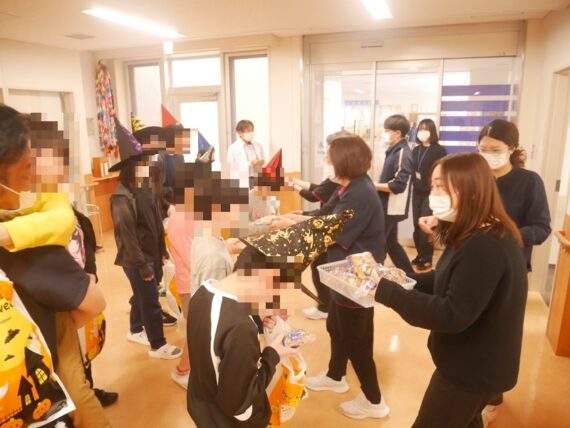 帽子などで仮装をした子どもたちが院内の様々な場所に出没し、