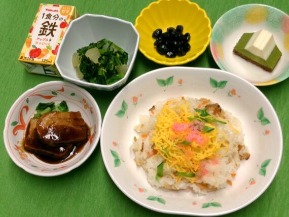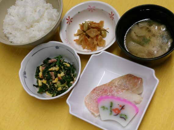 元旦には、お正月らしい華やかな料理をお出ししました。本年も患者さんに安心でおいしく、喜んでいただける食事をお届けできるよう、栄養管理科一丸となって取り組んでまいります。季節の行事食や旬の食材を活かした料理など、食を通して少しでも日々の楽しみを感じていただけるよう努めてまいりますので、どうぞよろしくお願いいたします。