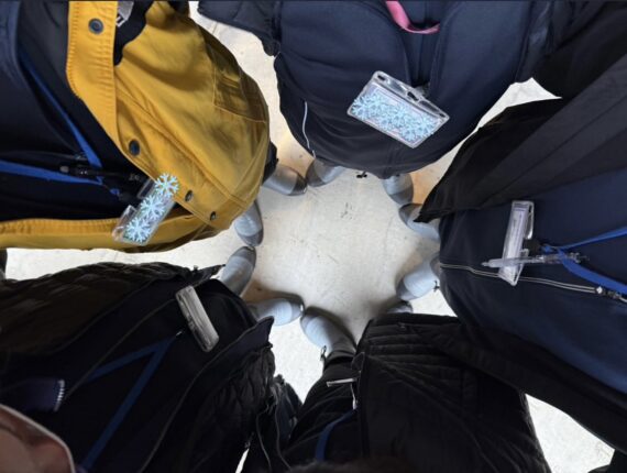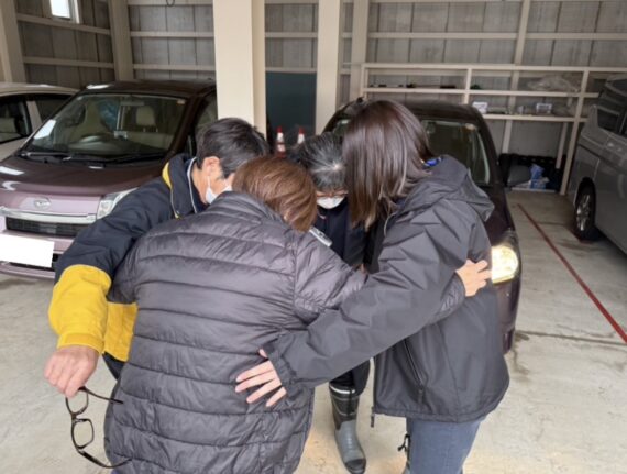 ↑訪問前、気合を入れるために円陣を組むスタッフの様子です🔥