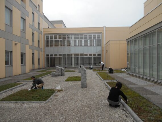 今年度も正面エントランスから見える中庭の環境整備を始めます。