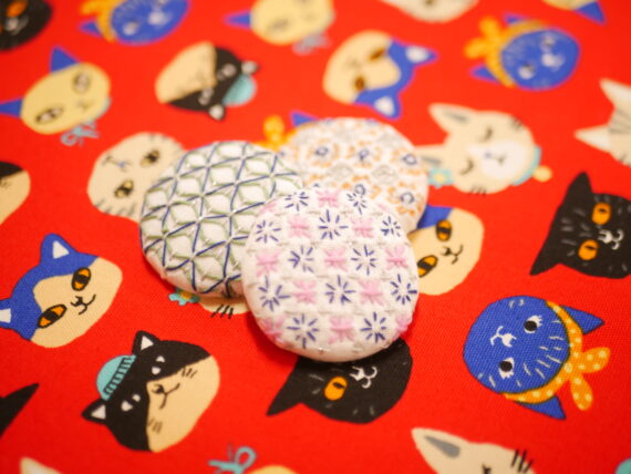 ・青と緑の作品は、”くぐり刺し”という技法を使っていて、